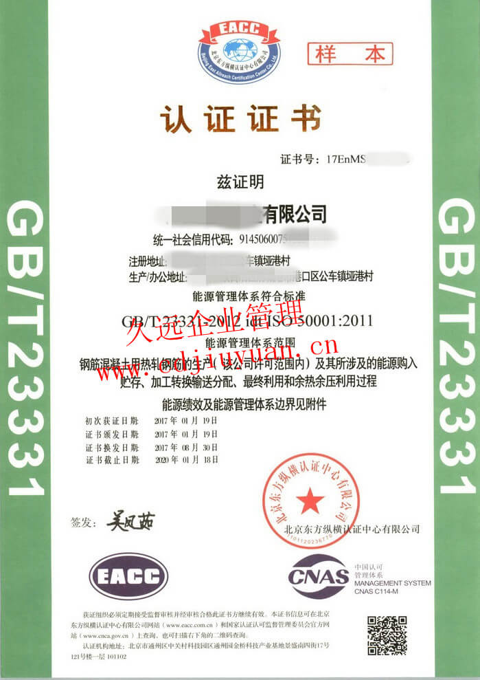 ISO50001能源管理體系認(rèn)證證書(shū)