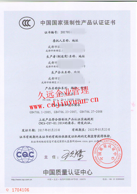 中國(guó)CCC認(rèn)證證書(shū)